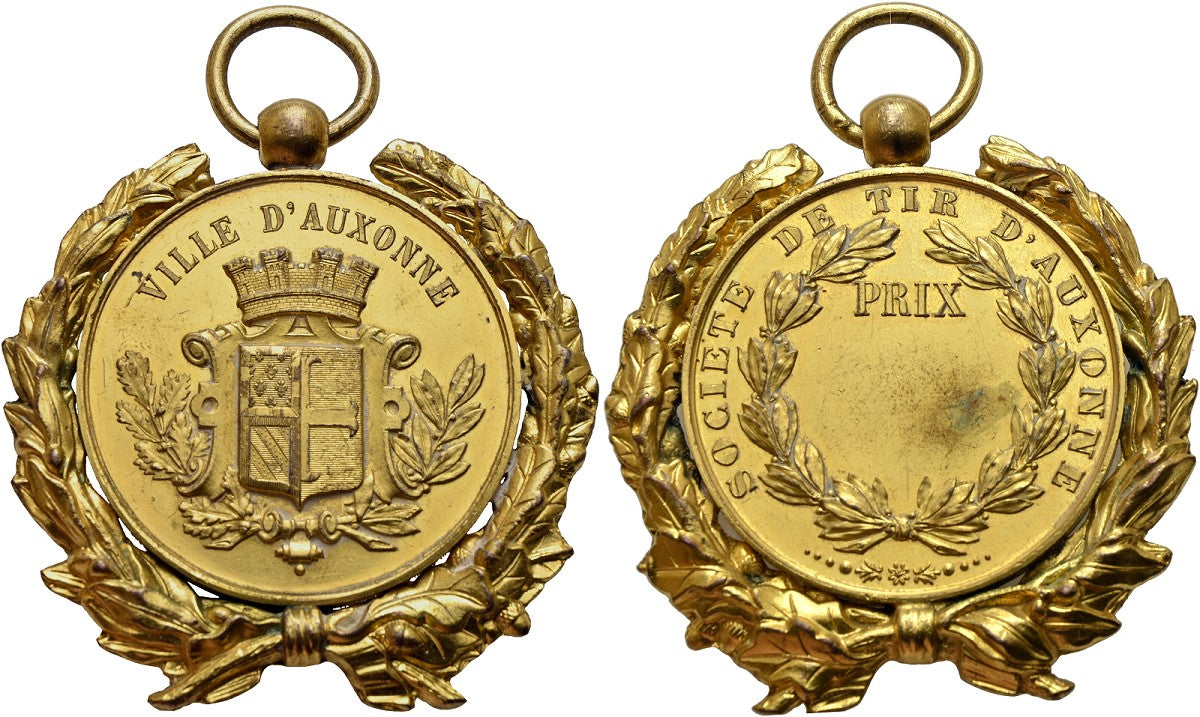 Rv.: SOCIETE DE TIR D'AUXONNE, in einem Kranz aus Eichen- und Lorbeerzweigen PRIX.