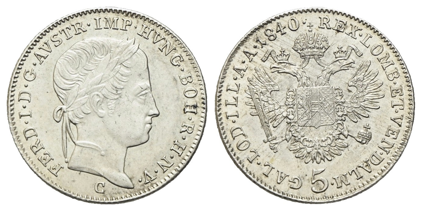 <p>5 Kreuzer 1840 G, Prag<br>Herinek: 343<br>vzgl./Stplfr.</p>