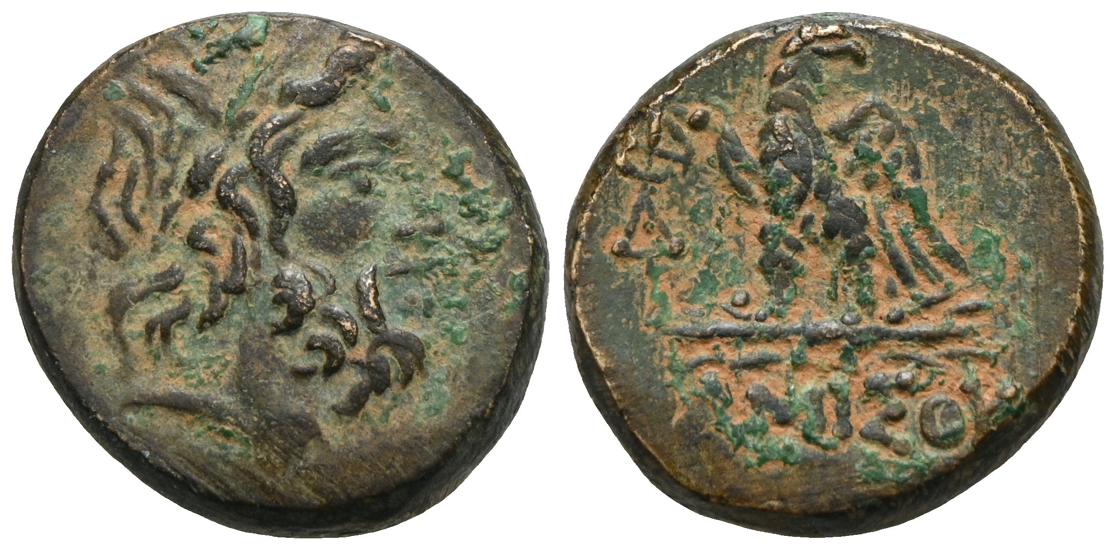 Av.: Kopf des Zeus mit Lorbeerkranz nach rechts.