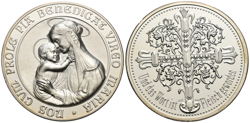 999/1000 Silber. Dm.: 50 mm. Gew.: 58,64 g.