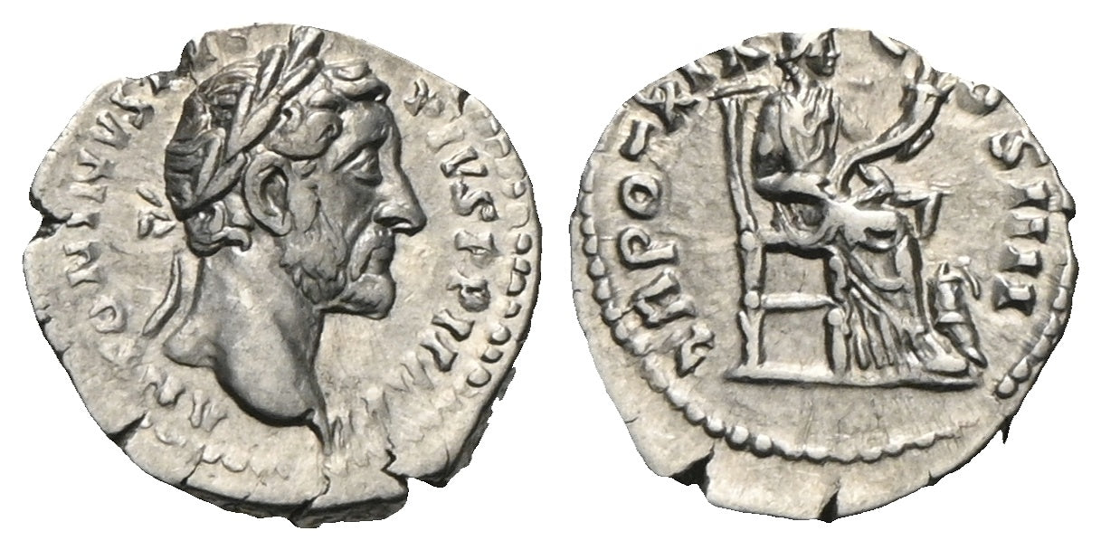 Av.: ANTONINVS AVG PIVS P P IMP II, belorbeerter Kopf nach rechts.