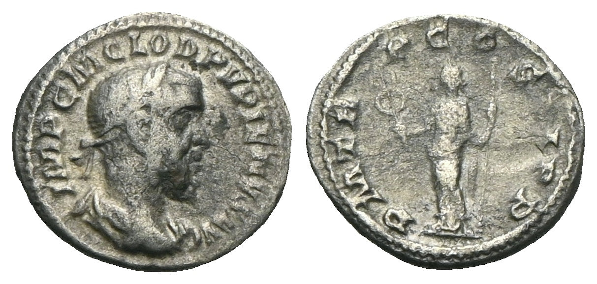 Av.: IMP C M CLOD PVPIENVS AVG, gepanzerte, drapierte und belorbeerte Büste nach rechts.