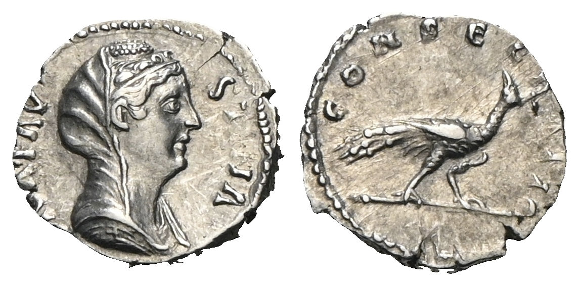 Rv.: CONSECRATIO, Pfau nach rechts schreitend, Kopf nach hinten gewendet.