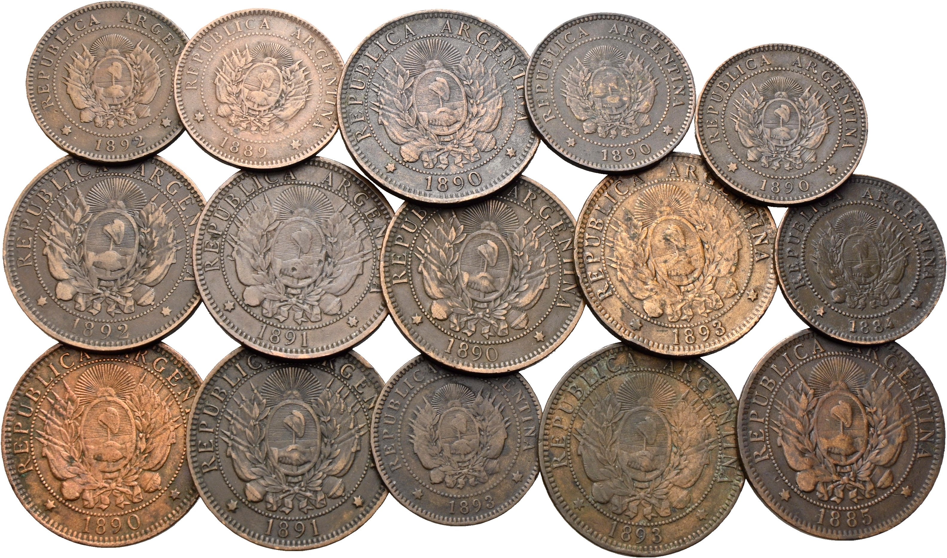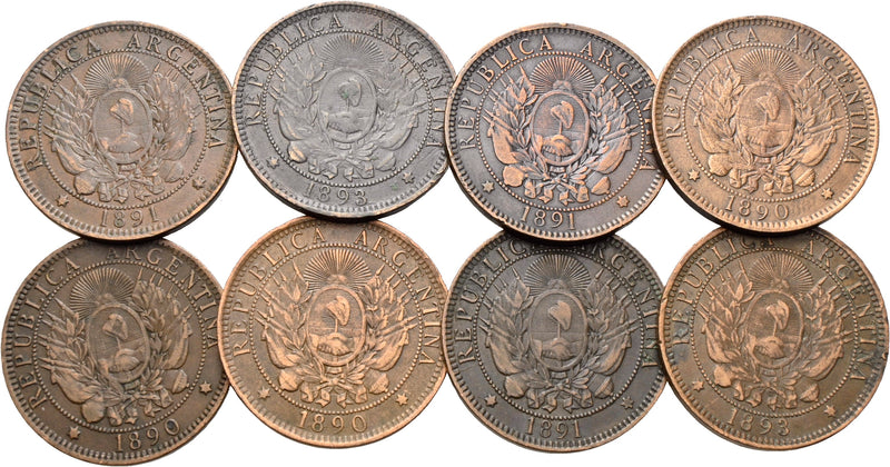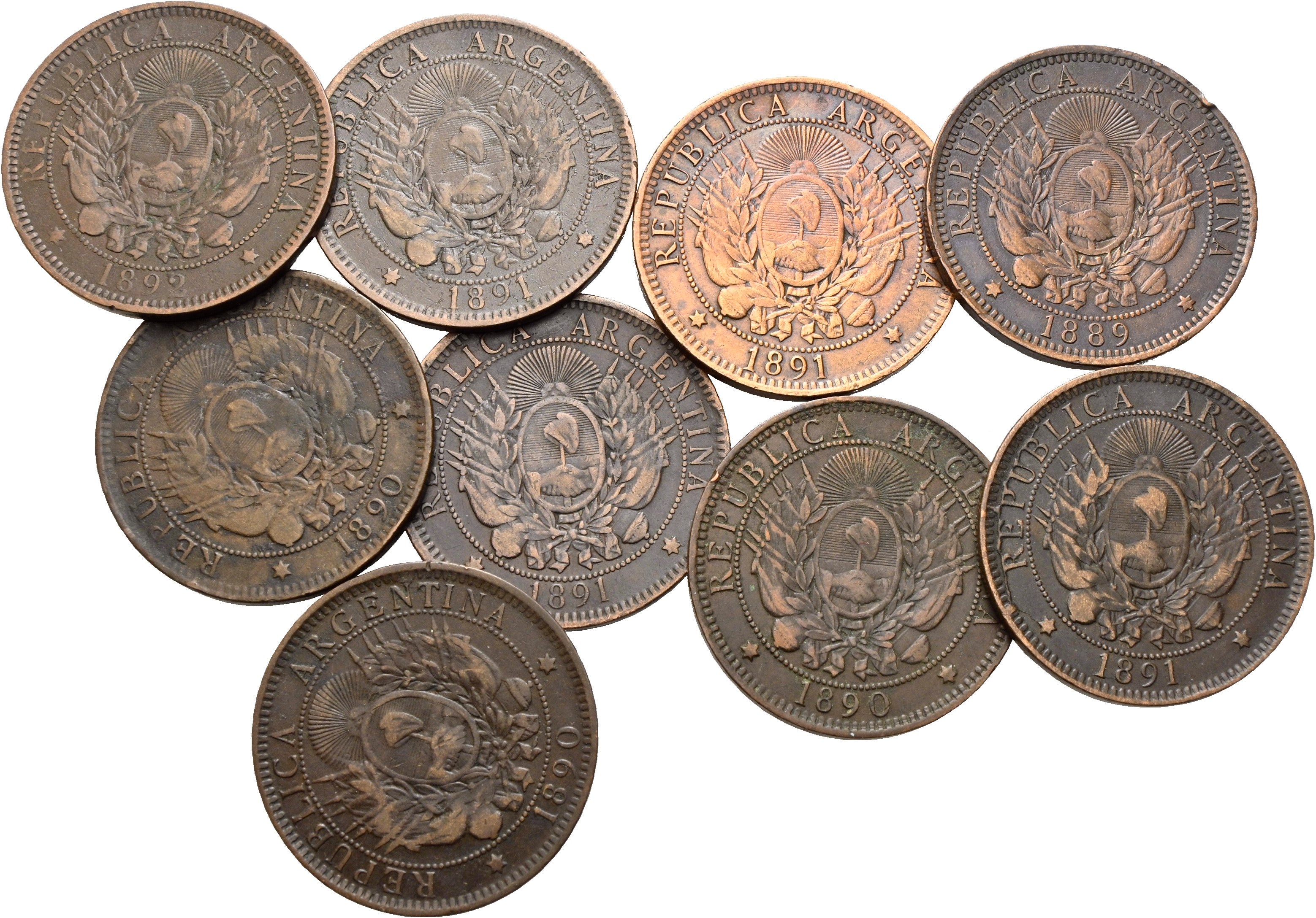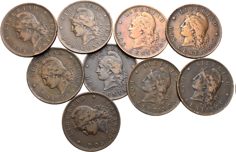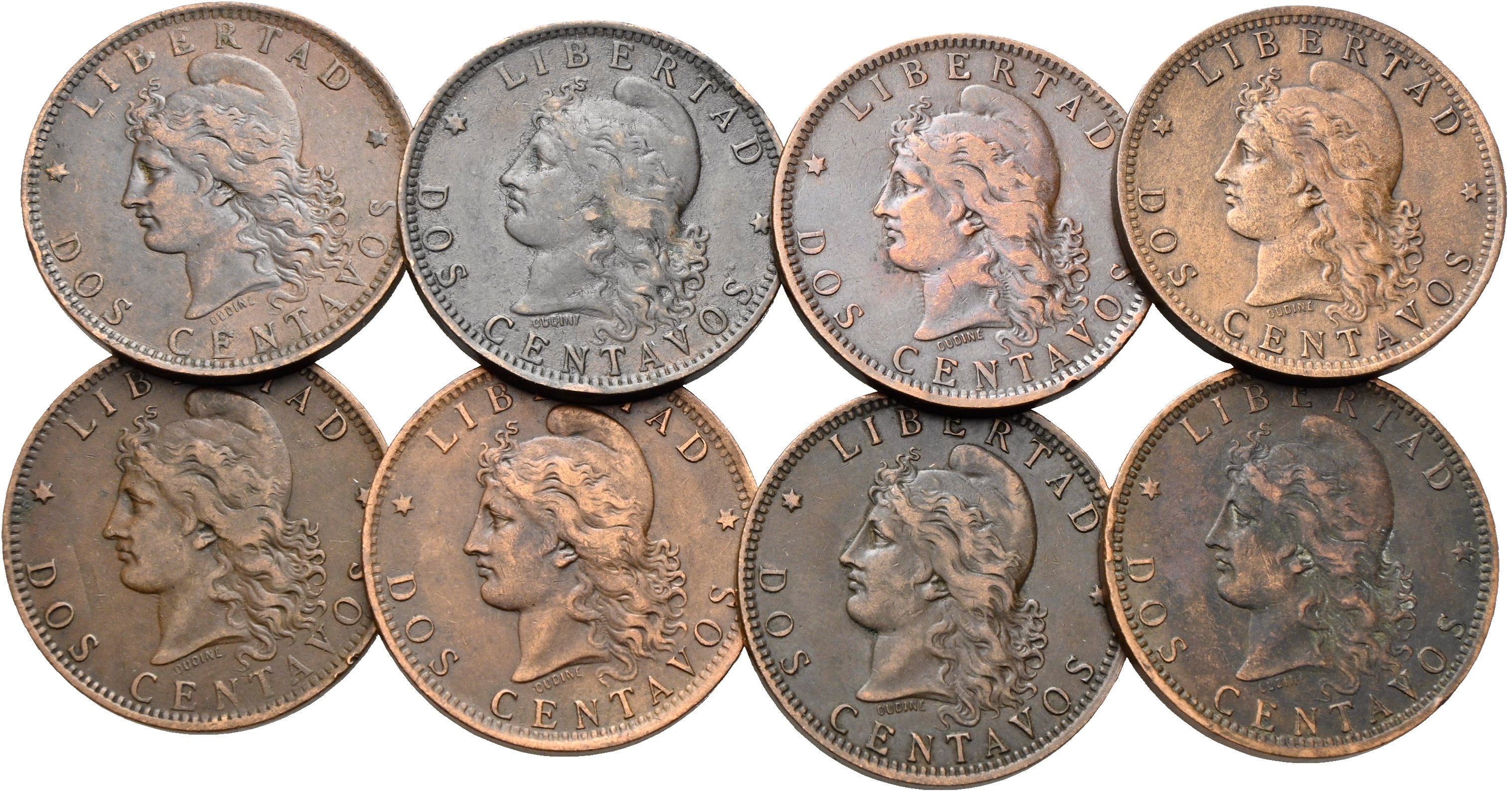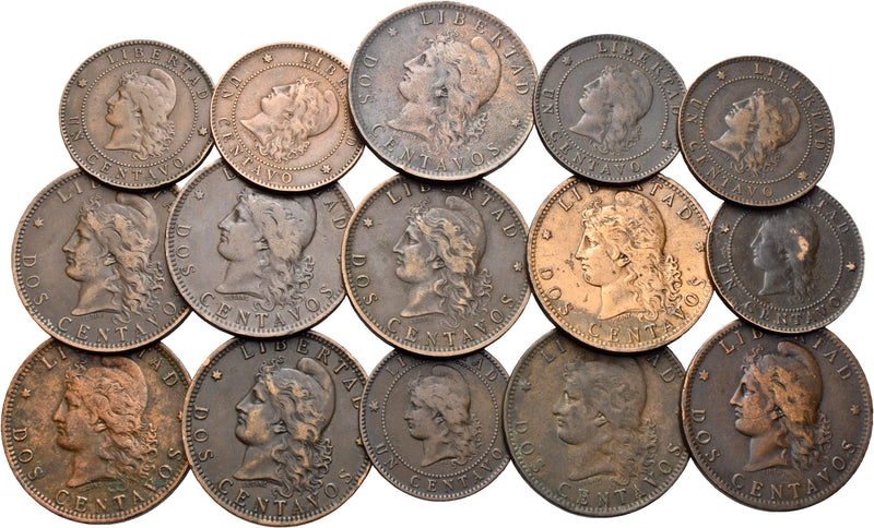 6 x 1 Centavos und 26 x 2 Centavos, diverse Jahrgänge zwischen 1884 und 1893.