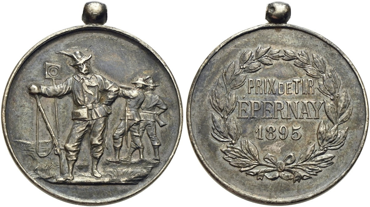 Rv.: 3 Zeilen Schrift in einem Lorbeerkranz, PRIX DE TIR / EPERNAY / 1895.