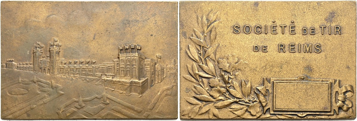 Rv.: Lorbeerzweige und leeres Gravurfeld in Kartusche, darüber 2 Zeilen Schrift SOCIETE DE TIR / DE REIMS.