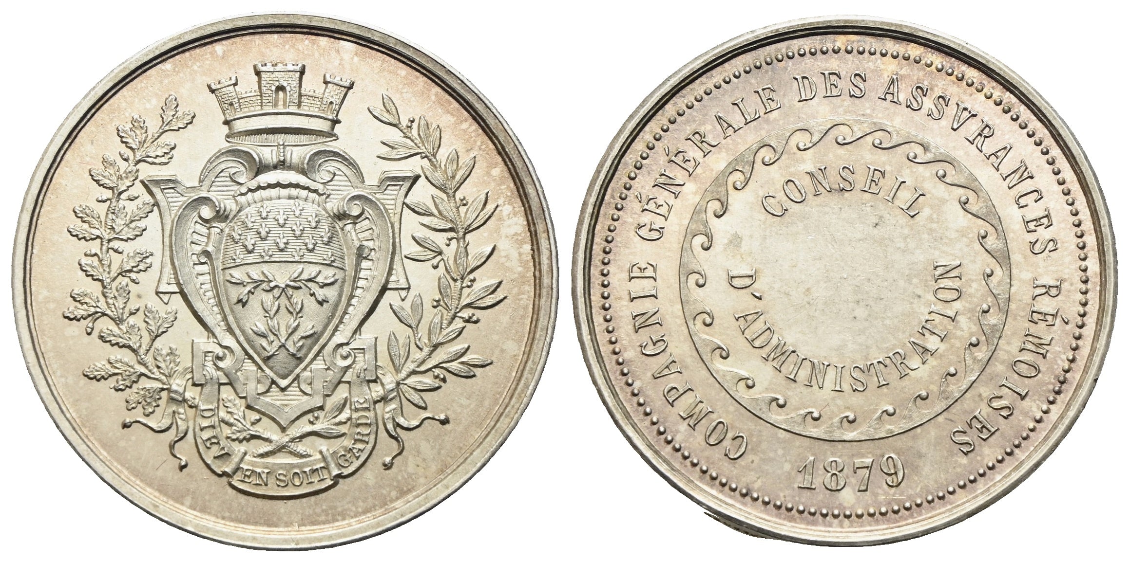 Av: Wappen der Stadt Reims zwischen Lorbeer- und Eichenzweigen.