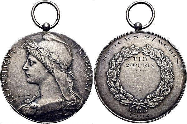 Rv.: ST OUEN S/MORIN // 1892, in einem Kranz aus Eichen- und Lorbeerzweigen TIR / 2me PRIX, signiert unten A. DESAIDE.