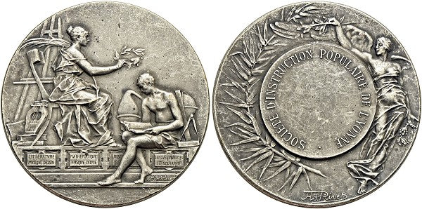 Rv.: SOCIÉTÉ D'INSTRUCTION POPULAIRE DE L'YONNE, Victoria und Palmzweig um Gravurfeld, signiert unten Ad Rivet.