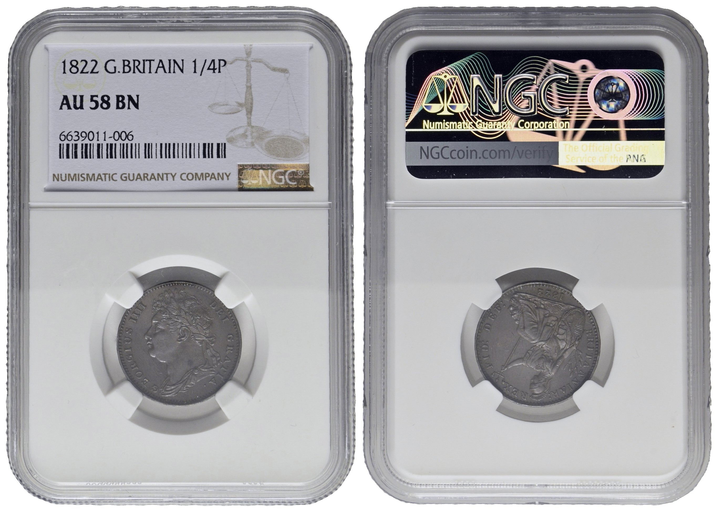 1/4 Penny (Farthing) 1822.