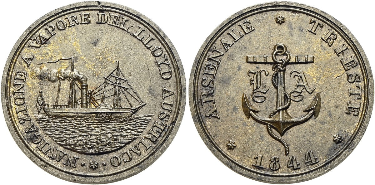 Rv.: ARSENALE TRIESTE // 1844, Gesellschaftemblem Anker zwischen L-A.