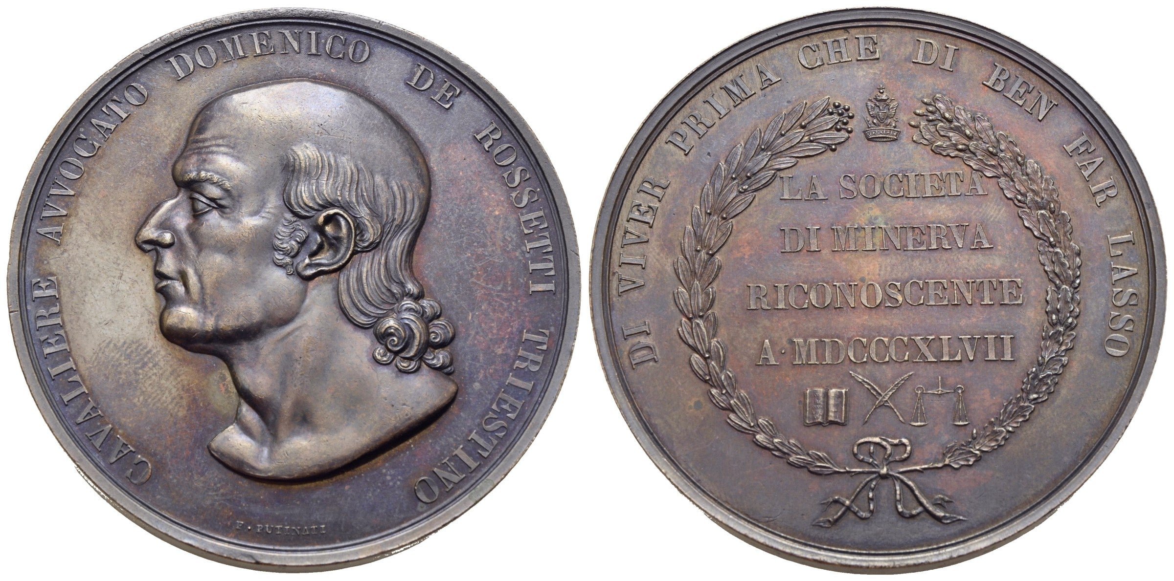 Av.: CAVALIERE AVVOCATO DOMENICO DE ROSSETTI TRIESTINO, Kopf nach links, signiert unten F. PUTINATI.