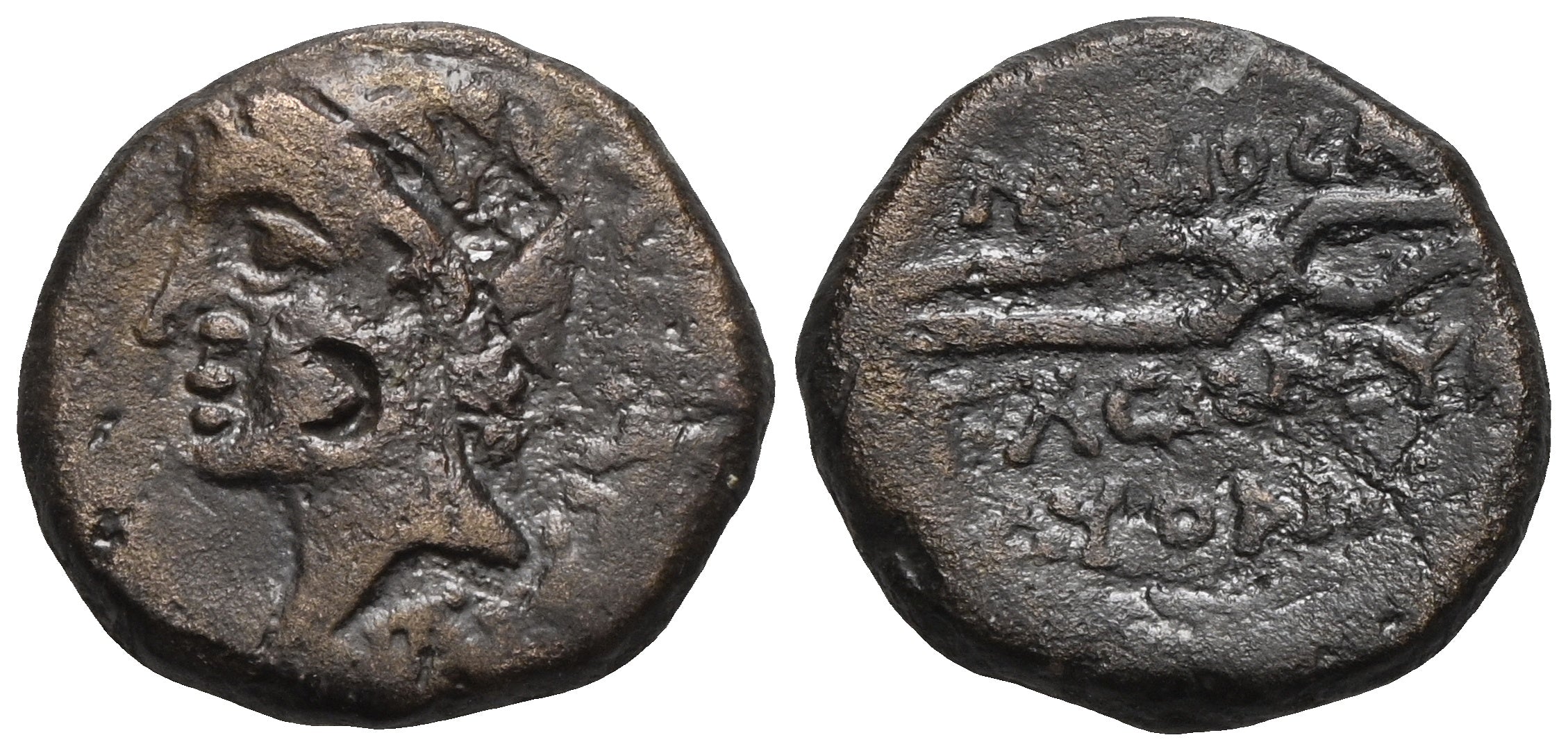 Rv.: Γ ΜΑΡΚΙΟϹ ΛΕΥ // Γ ΑΥϹΩΝΕΥϹ // ΔΥΟ ΑΝΔΡ, Zange.