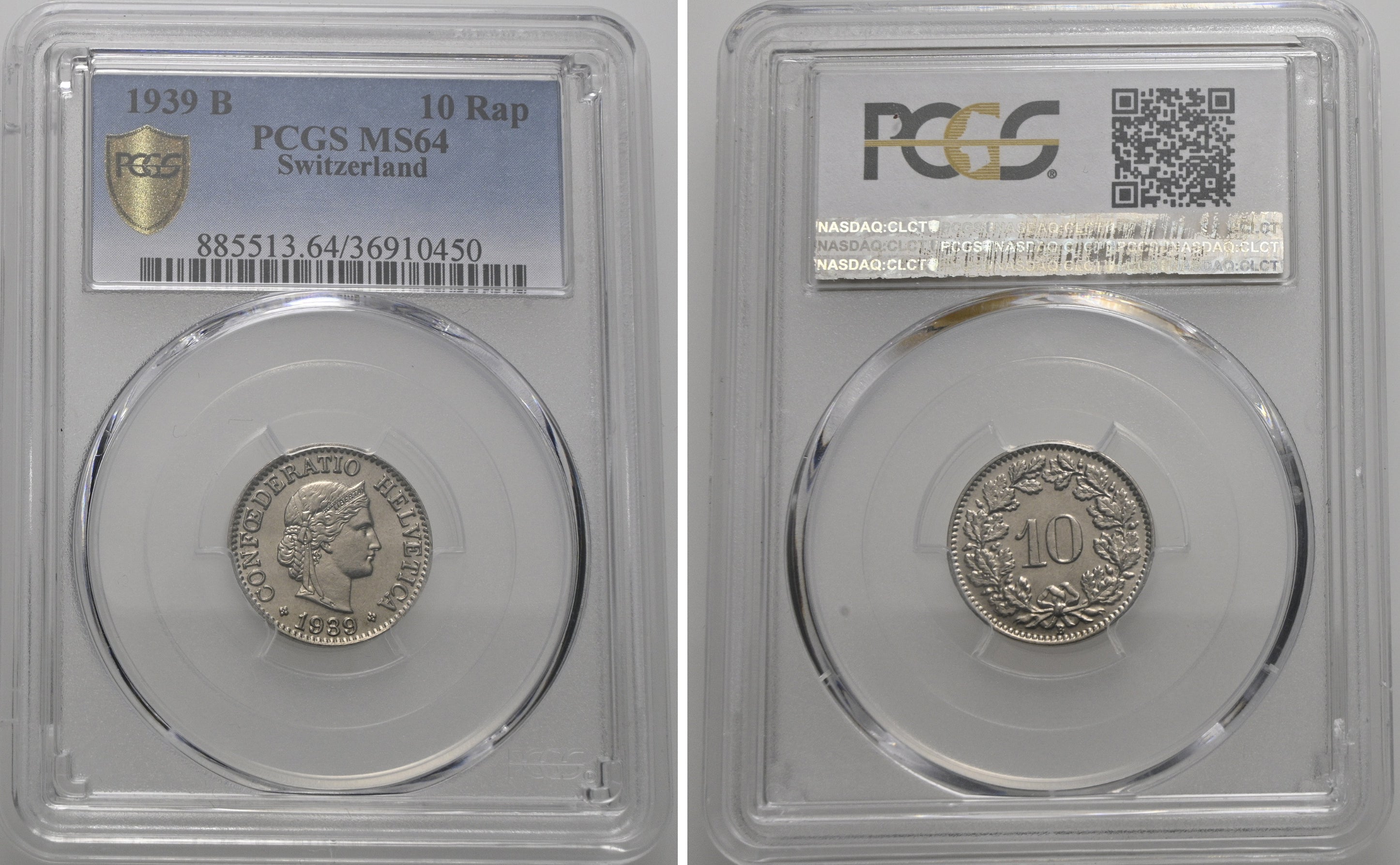 Schweiz - Eidgenossenschaft - 10 Rappen 1939 B